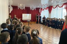 На линейке присутствовали учащиеся 1а и 1б классов,члены отрядов"Юнармия"и "Факел"(руководитель Димиева Э.А). -