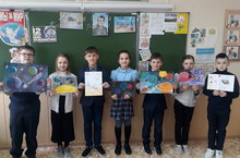 9 апреля в 3"В" классе был проведен классный час к 60-летию полета Юрия Гагарина в космос