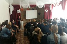 16 октября в актовом зале школы был проведен классный час для учащихся 10-11 классов с участием депутата Лениногорского городского Совета, генерального директора Издательского дома «Ярмарка» Кожевникова В.Ф.