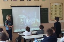 В День Космонавтики на уроке физики была просмотрена презентация, сделанная ученицей 9 класса Шамсутдиновой Э., под названием "Гагарин - глазами современников и его потомков"