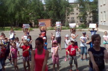 23 июня в пришкольном лагере «Ромашка» ребята с утра готовились к флэш-мобу, рисовали плакаты, рисунки по пропаганде здорового образа жизни. Затем смотрели фильм «История дельфина»