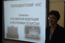 Урок провели учитель истории и обществознания Нематуллаева Римма Рустемовна и заведующая юношеским отделом городской центральной библиотеки Левина Татьяна Александровна. Участниками открытого урока являлись ученики 9А и 9Б классов, которые в ходе повторили основы парламентаризма в РФ, функции органов государственной власти, показали знания государственных символов Российской Федерации и Республики Татарстан. Ребята работали со статьями Конституций РФ и РТ, посмотрели интересный видеофильм о государственных символах. Особую гордость ребята испытали за успех земляка-лениногорца – Рамазана Байтимерова, автора текста Гимна РТ и его дочери – Кушилковой Гульшат Рамазановны, по инициативе которой стихотворение отца было представлено на конкурс текстов гимна. В завершении урока ученики исполнили гимны Российской Федерации и Республики Татарстан.