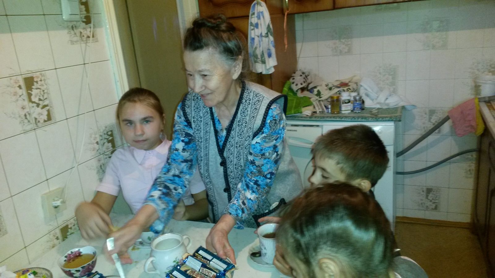 Опубликовано: 07.10.2016По сложившийся традиции, учащиеся 5 А класса поздравили с Днем пожилых людей бывшего учителя математики нашей школы Хайрову Разию Гумеровну. За чашкой чая она рассказала ребятам о жизни, о своей нелегкой, но интересной работе учителя, в которой было много хорошего: радость за успехи учеников, гордость за их достижения.