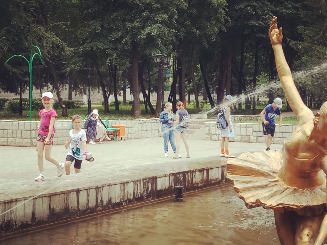 После просмотра фильма дети совершили экскурсию по достопримечательностям города. Сегодня они прогулялись до знаменитого городского фонтана, к любимице наших горожан – к балеринам. Фото