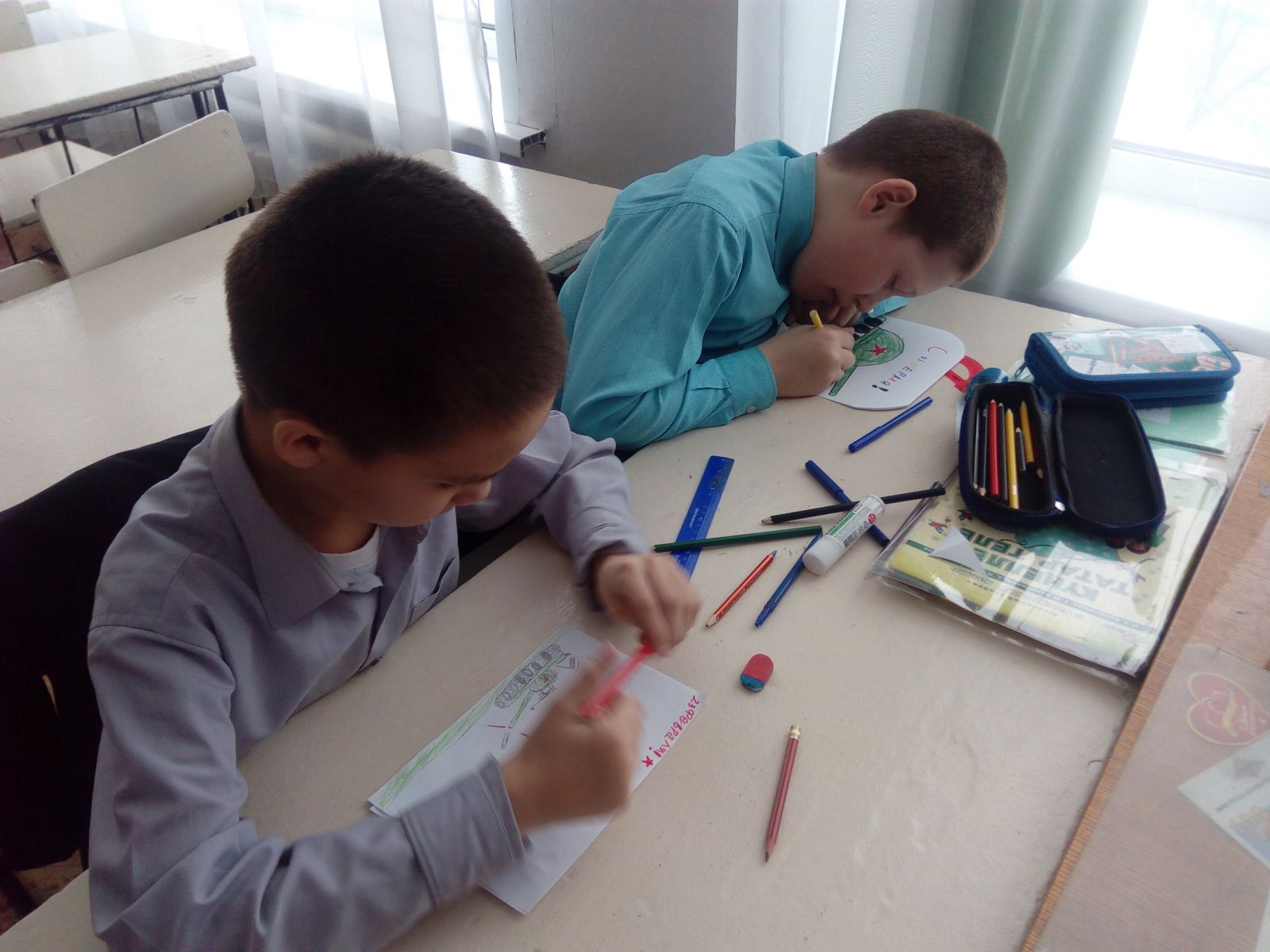 Учащиеся 1а и 3а класса приняли активное участие в конкурсе поделок и рисунков(организованном совместно клубом,,Ровесник")"Присягают Родине сыны...", посвященном Дню защитника Отечества.