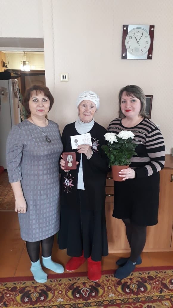 Зинаиде Михайловне были вручены памятная медаль, цветы и продуктовый набор. Встреча завершилась чаепитием и фотографией на память.