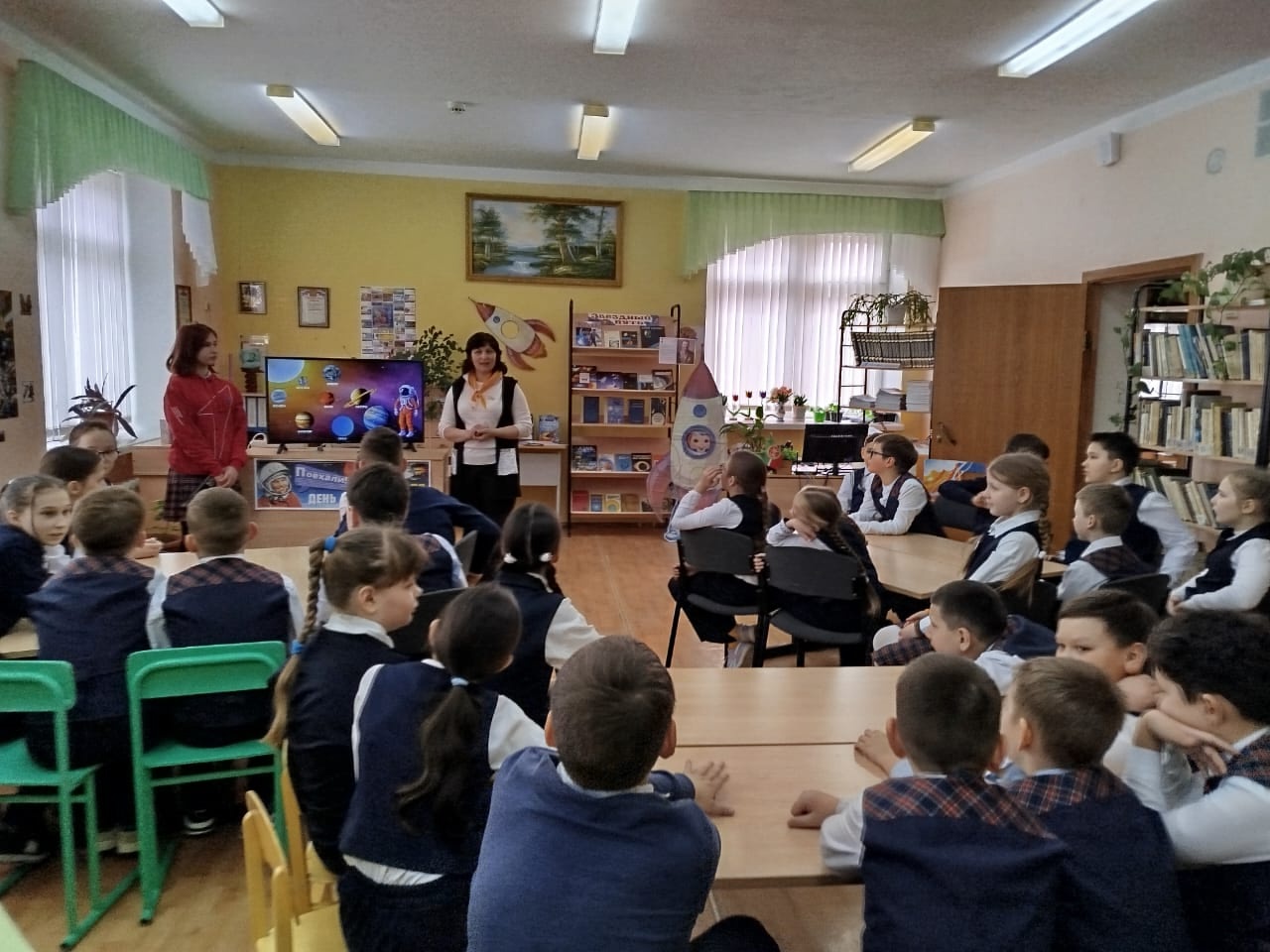 Городская библиотека филиал № 3, 10 апреля 2025 года провела познавательный час «Просторы вселенной». Совместно с советником Зариповой Э.И. и активистами школьного ученического самоуправления и "Совета Первых", ученицы 7 класса в начале мероприятия рассказали ребятам о том, что 12 апреля отмечается День Космонавтики. Показали ребятам презентацию про планеты и небесные тела, и подготовили рассказы про космонавтов: Ю.А. Гагарина, А.А.Леонова, В.Н.Терешкову. Продолжили мероприятие космической игрой, ребята поделились на три команды, выбрали капитанов и придумали названия. Баллы подсчитывало компетентное жюри. Первая станция с заданиями называлась «Планетарий», и им нужно было правильно подписать названия планет. На станции «Знатоки планеты» ребята расставляли планеты по порядку, начиная от Солнца. Они отвечали на вопросы, писали письма другим жителям Космоса, находили отличия и решали филворды. Ребята выполняли задания и зарабатывали баллы. Затем продолжили мероприятие конкурсом капитанов, они отвечали на вопросы, и остались только сильнейшие.