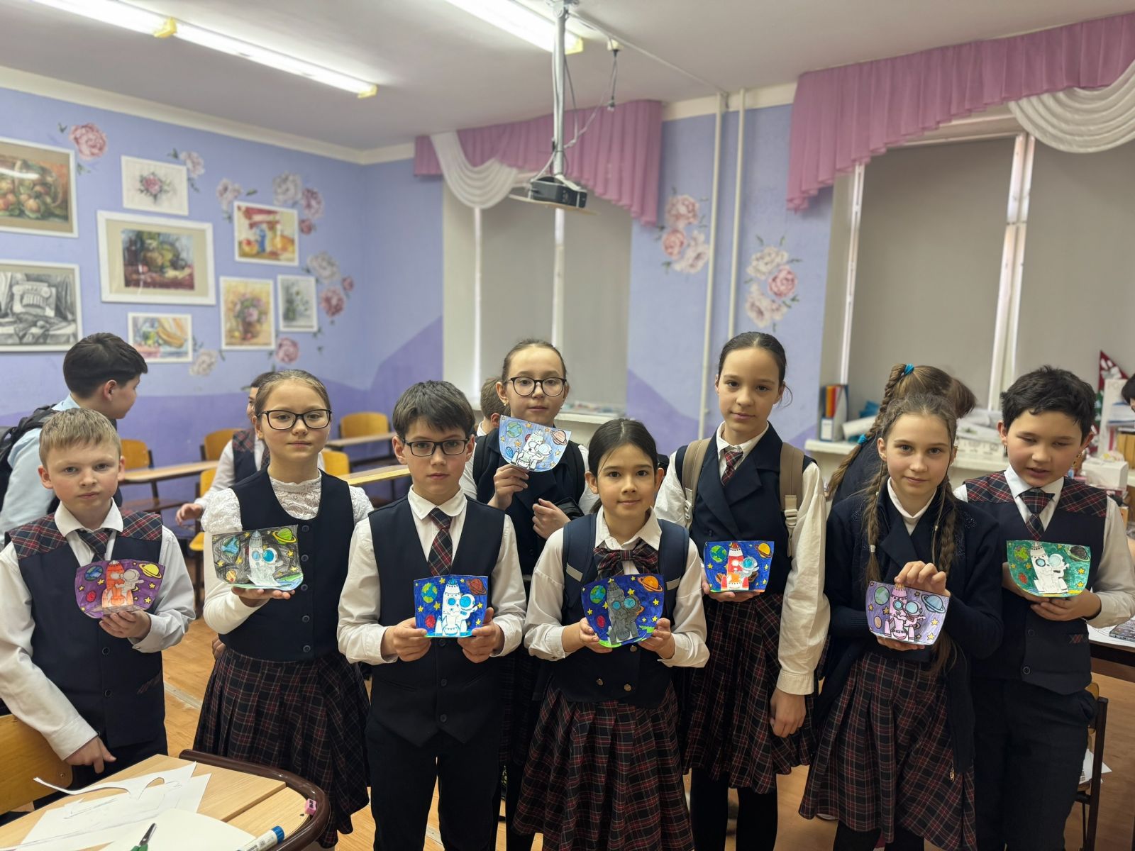 На уроке изобразительного искусства ученики 4 класса -Орлята России, совершили увлекательное путешествие в глубины космического пространства. Они познакомились с Вселенной, сыграли в игру «Солнечная система», узнали о творчестве художников А. Леонова и А. Соколова.