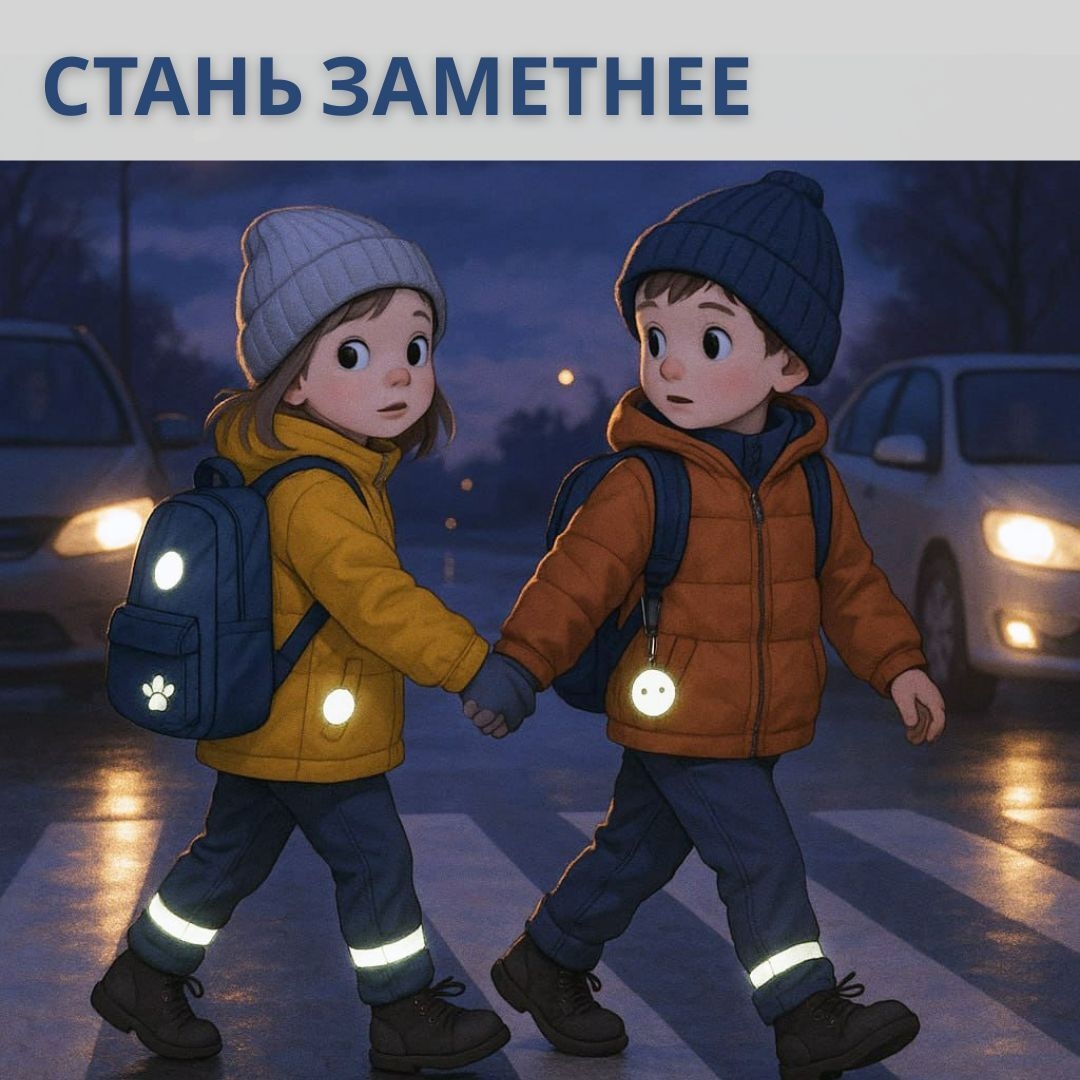 Осенью и зимой темнеет рано. В темное время суток водитель замечает пешехода с расстояния всего 25–50 метров. Этого часто недостаточно, чтобы вовремя среагировать.????Когда на одежде пешехода есть световозвращающий элемент, это расстояние увеличивается до 150 метров. Это критически важные секунды и метры, которые могут спасти жизнь.