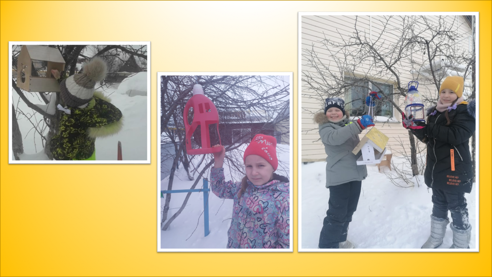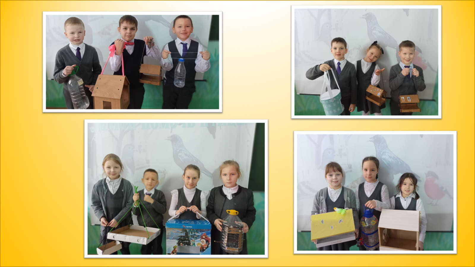В нашей школе проведена экологическая акция «День птиц», целью которой было не только познакомить детей с праздником – День птиц, но и провести массу полезных и добрых дел. Исходя из намеченной цели, были поставлены следующие задачи: развивать экологическую грамотность детей; формировать интерес к окружающему миру, развивать экологическое сознание у детей; воспитывать стремление бережного отношения к природе, активного участия в деле защиты окружающей среды; развитие внимания, дисциплинированности и ответственности. Учащиеся 1 класса выполнили самые красивые кормушки и повесили по дворе школы.
