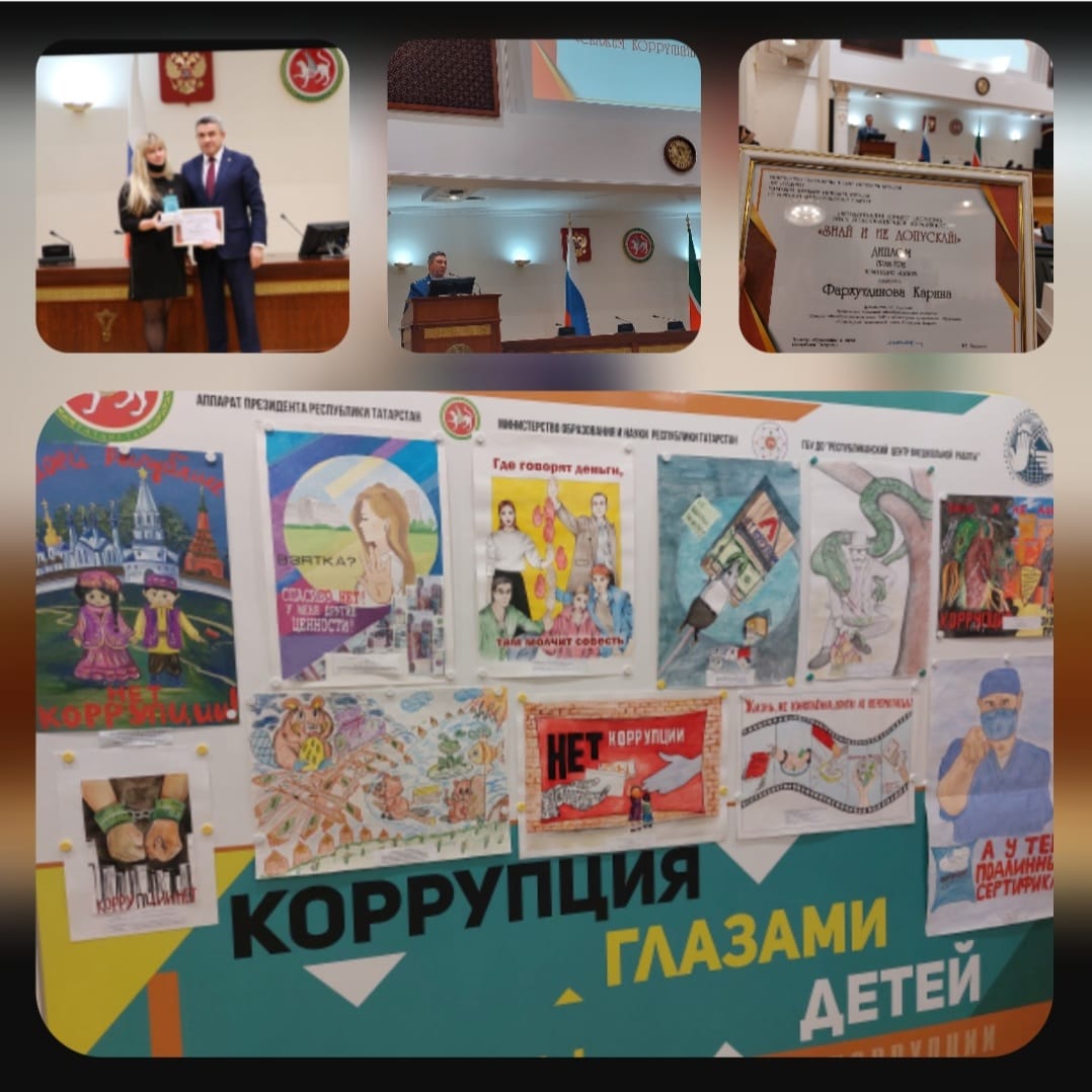 Казанском Кремле состоялась церемония награждения, участвовавших в Республиканском творческом конкурсе на антикоррупционную тематику. Наша школа заняла Гран- при в номинации плакат.