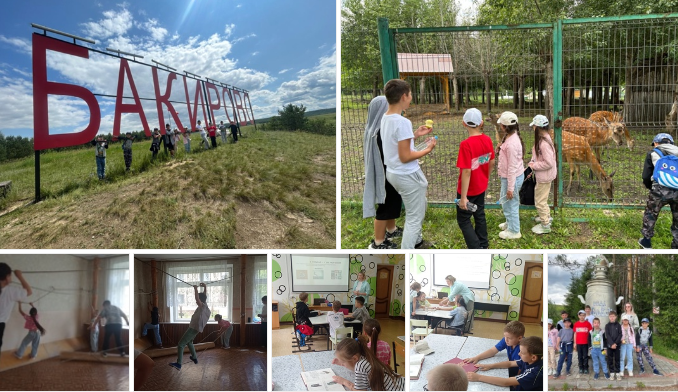 После завтрака ребята отправились на автобусе на экскурсию в Бакирово.Он находится в живописной лесопарковой зоне на берегу реки Шушма.Ребята отправились на пешую прогулку по окрестностям, насладились чистым воздухом и природными красотами.С большим удовольствием посетили мини- зоопарк.