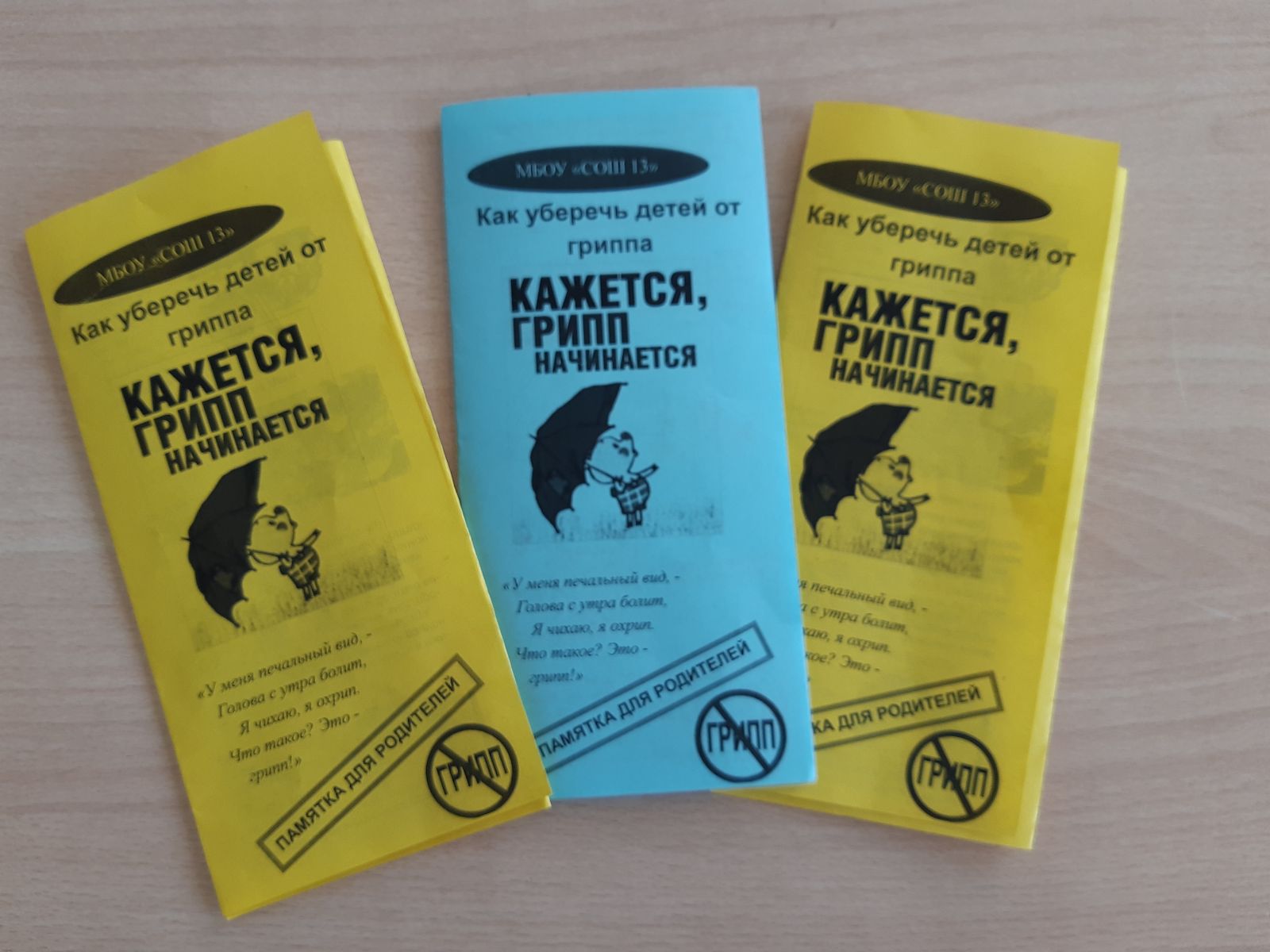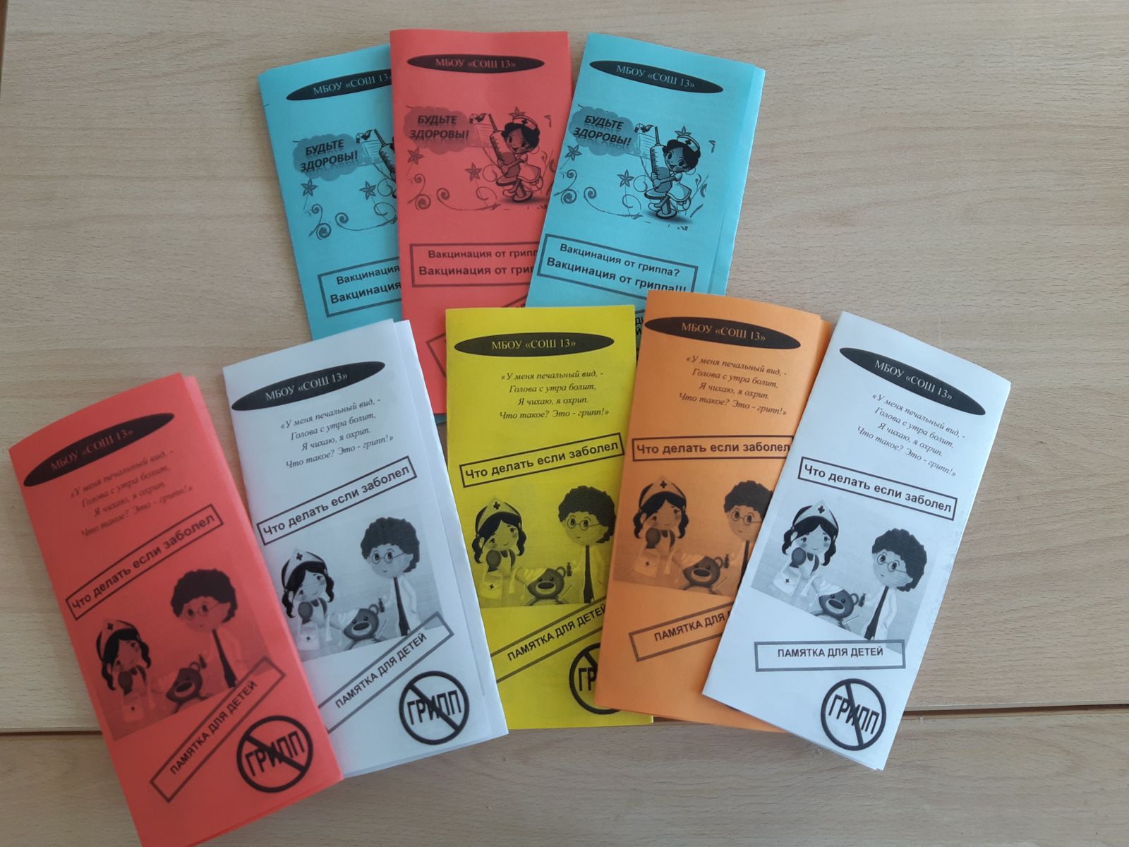 В рамках данного мероприятия в школе были проведены беседы, классные часы по профилактике гриппа и ОРВИ с учащимися школы. В ходе беседы с помощью наглядных материалов, презентаций, мультфильмов ребята узнали о строении вируса гриппа, путях его распространения и мерах профилактики. Школьники узнали, что такое «респираторный этикет». Как оказалось, эти слова означают обычную необходимость прикрывать рот и нос разовым носовым платком или салфеткой при чихании или кашле, а после использования выбрасывать разовый платок в урну. Были разработаны буклеты по профилактике гриппа и ОРВИ, о вакцинации против гриппа, распространены среди обучающихся школы и родителей. На классных уголках и информационных стендах школы представлены памятки по теме «Грипп, насколько опасен и как, предотвратить заболевание?». Проведен сбор согласий (отказов) родителей на осуществление иммунизации детей против гриппа. В школе ведется контроль за поддержанием оптимального теплового режима, проводится дезинфекция, влажная уборка, проветривание. Подводя итог данных мероприятий, ребята поставили перед собой цель – быть здоровыми, для этого они будут регулярно и тщательно мыть руки с мылом, одеваться по погоде, заниматься спортом и кушать больше овощей и фруктов, содержащих витамины.