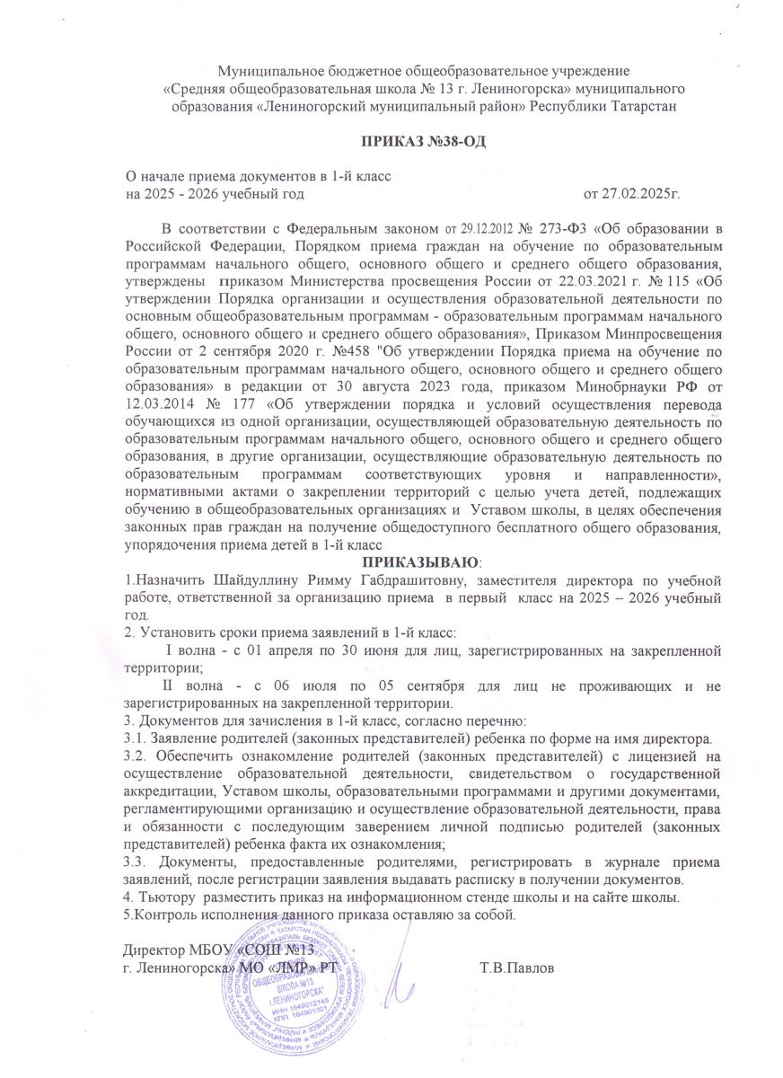 - Приказ о начале приема в 1-й класс на 2025-2026 учебный год;