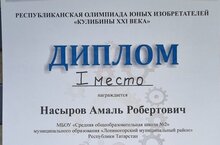 Талантливый ученик Насыров Амаль продемонстрировал выдающиеся способности, завоевав первое место на престижной республиканской олимпиаде юных изобретателей "Кулибины XXI века". Это соревнование стало площадкой для демонстрации инноваций и инженерных талантов среди школьников республики.