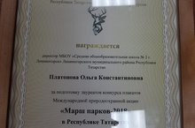 Школа №2 награждена Грамотой государственного комитета РТ по биологическим ресурсам за подготовку лауреата конкурса плакатов международной природоохранительной акции "Марш парков 2018" в Республике Татарстан.