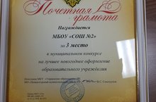 Почетной Грамотой Управления Образования награждена школа№2, занявшая 3 место в муниципальном конкурсе на "Лучшее новогоднее оформление образовательного учреждения".