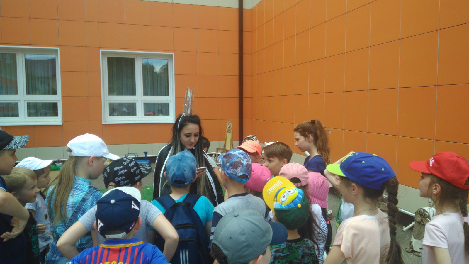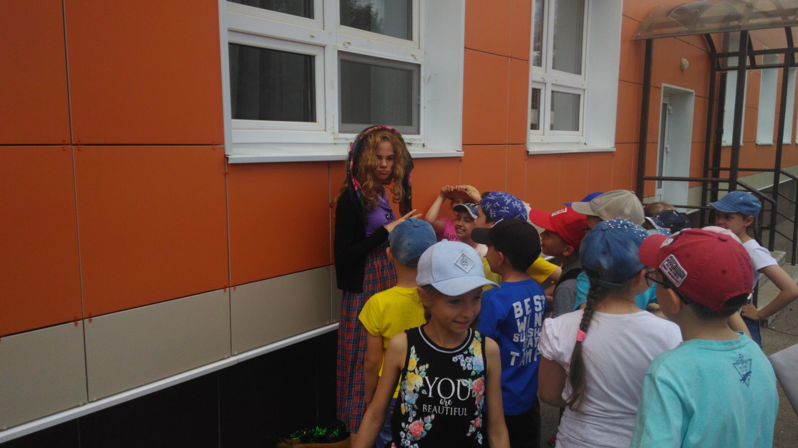 Двадцать второго июня пришкольный лагерь «Ромашка» посетили актеры Альметьевского драматического театра с детским спектаклем «Созвездие большого пса» по пьесе автора Рафаэля Гайнуллина в постановке режиссера Юлии Саубановой. Представление порадовало юных зрителей, отдыхающих в лагере. А они отблагодарили актеров теплыми аплодисментами! Далее прошла игровая программа «День наоборот». После обеда ребята приняли участие в акции «Свеча Памяти», возложили цветы к мемориалу Вечного огня.