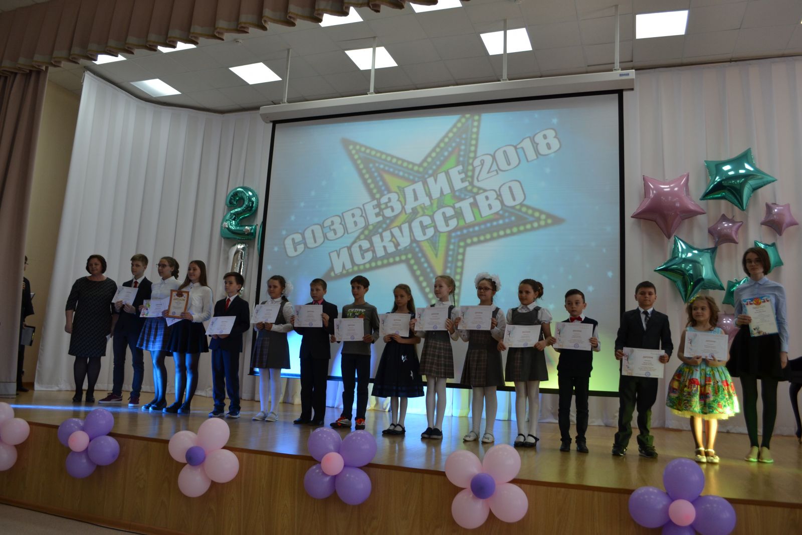 30 мая в СОШ№2 состоялся традиционный школьный фестиваль «Созвездие-2018». Еще 15 мая комиссия в составе 10 человек сформировала список награждаемых обучающихся по номинациям «Мега-звезды», «Активисты», «Спорт», «Интеллект», «Искусство». Конкурсная комиссия при составлении итогового списка победителей руководствовалась следующими критериями отбора: организаторские способности, активность в реализации детских проектов, призеры и победители очных олимпиад, конференций, конкурсов, соревнований, высокая академическая успеваемость, наиболее активные организаторы внеурочной деятельности по рейтингу детских объединений, творческие достижения и т.д.