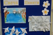 Сегодня в пришкольном лагере "Ромашка" прошла акция "Свеча Памяти". Каждый отряд своими руками изготовили журавликов - символ мира, покоя и памяти.