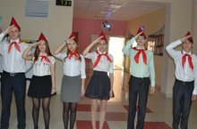 19 мая 2017 г в рамках празднования 95-летия Пионерии учащиеся школы совместно с РДШ встречали учащихся и учителей лозунгами Пионерской организации.