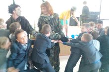 В целях развития интереса к театру, к родному языку и национальной культуре 26 мая 2017 года в актовом зале нашей школы Альметьевский татарский государственный драматический театр показал интерактивный спектакль «Шурале-шоу». Пьеса “Шурале-шоу” Эдуарда Шахова написана по мотивам бессмертного творения Габдуллы Тукая “Шурале”. “Шурале-шоу” – это баттл (состязание) между сказочными Шурале и Людьми. Это - пластически и музыкально современный, уникальный в своем роде спектакль, с красочным сюжетом и яркими, запоминающимися персонажами. Творческая группа представила “старую” историю с учетом восприятия современных детей. Форма интерактивной игры между актерами и учащимися начальной школы прошла увлекательной и содержательной.