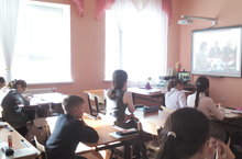 вклад в будущее республики». Урок начался с прослушивания гимна России и Татарстана. Ребята в игровой форме обсуждали такие понятия как: Государство, человек, закон, семья, гражданин, общество, школа, класс. Посмотрели видеоролик « Республика Татарстан. Казань», обсудили в парах пословицы о Родине. Урок закончился совместным проектом