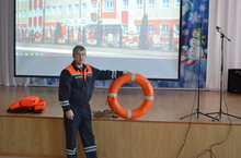 Сотрудники МЧС продолжают проводить профилактические мероприятия с населением в целях обучения правилам безопасного поведения вблизи водоемов в зимнее время. Сегодня инспекторы МЧС провели познавательную беседу с учащимися начальной школы. Школьники с интересом слушали рассказ инспекторов о том, что толщину льда можно узнать по цвету льда, что проведение игр на льду опасно, а также о том, что при низких температурах шансы на спасение при чрезвычайном происшествии на воде становятся значительно меньше. Также учащиеся узнали много интересного и о различных способах спасения пострадавшего, оказавшегося под водой.