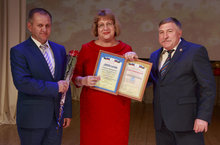 Начальник управления образования Санатуллин В.С. и мэр города Лениногорска Хусаинов Р. Г. поздравили директора школы Платонову Ольгу Константиновну с победой на Всероссийской Выставке.