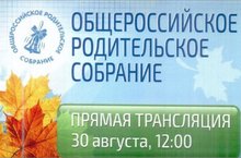 "30 августа 2016 года пройдет Общероссийское родительское собрание. На вопросы родителей ответит Министр образования и науки Российской Федерации Ольга Васильева. Начало прямой трансляции мероприятия на сайте Минобрнауки России - в 12:00 по московскому времени"