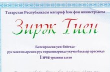 «Зирәк тиен – һәркем өчен тел белеме» уен-бәйгесенең җиңүчеләре билгеле булды. Рус төркемнәре арасында җиңүчеләр 3в классыннан Кульдюшова Вилена, Трофимова Ариадна, 5а классыннан Вахнин Александр. Татар төркемнәре арасында Касыймова Адилә (3а классы)һәм Вәлиулина Наилә (10 класс). Укучыларны һәм аларны әзерләгән укытучылар Касыймова Л.Ә., Хәсәнова Э.Г., Ризванова Г.М. җиңүләре белән котлыйбыз.