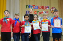 В целях подведения итога работы следопытов за 1 полугодие 11февраля в ДДТ состоялась городская игра «Путешествие по стране Содружества». От школы была представлена сборная команда «Весёлые ребята» под руководством педагога-организатора Меренковой Е.А. На игре ребята показали свою визитную карточку, продемонстрировали знания в области ПДД, растительного и животного мира, отвечали на вопросы истории пионерского движения и союза наследников Татарстана, а также верно угадали достопримечательности своей местности. В упорной борьбе команда «Весёлые ребята» заняла 1 место. Спасибо за игру!
