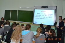 В рамках проведения недели английского языка, учителя Кузнецова Н.В. и Насибуллина В.Н. провели урок-игру «To the blackboard» среди учащихся 7А 7Б классов. Учащиеся соревновались в знаниях по страноведению. Игра была напряжённой, ребята активными, каждому хотелось показать знания о Великобритании, Шотландии, Ирландии, а конкурс капитанов поставил конечную точку в итоговом счёте. 35/29 – в пользу команды 7Б класса. Молодцы, ребята! Так держать!