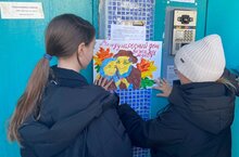 Ребята повесили яркие поздравительные плакаты на подъезды домов, наполнив улицы праздничным настроением.