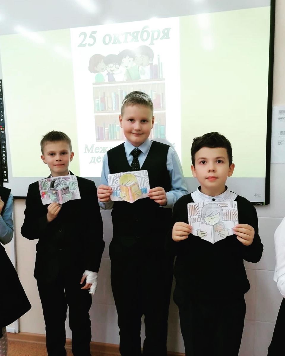 С появлением современных технологий многие стали забывать о бумажных книгах. Народ читает книги в электронном формате, но ведь есть множество других способов, как попасть в удивительный мир произведений. Этот мир называется библиотека. Учащиеся 3 В класса ( кл.рук. Есипова Е.В.) регулярно посещают школьную библиотеку и сегодня 25 октября в международный день школьной библиотеки, они с радостью поздравили с праздником заведующую нашей школьной библиотеки Валиеву С.Г.