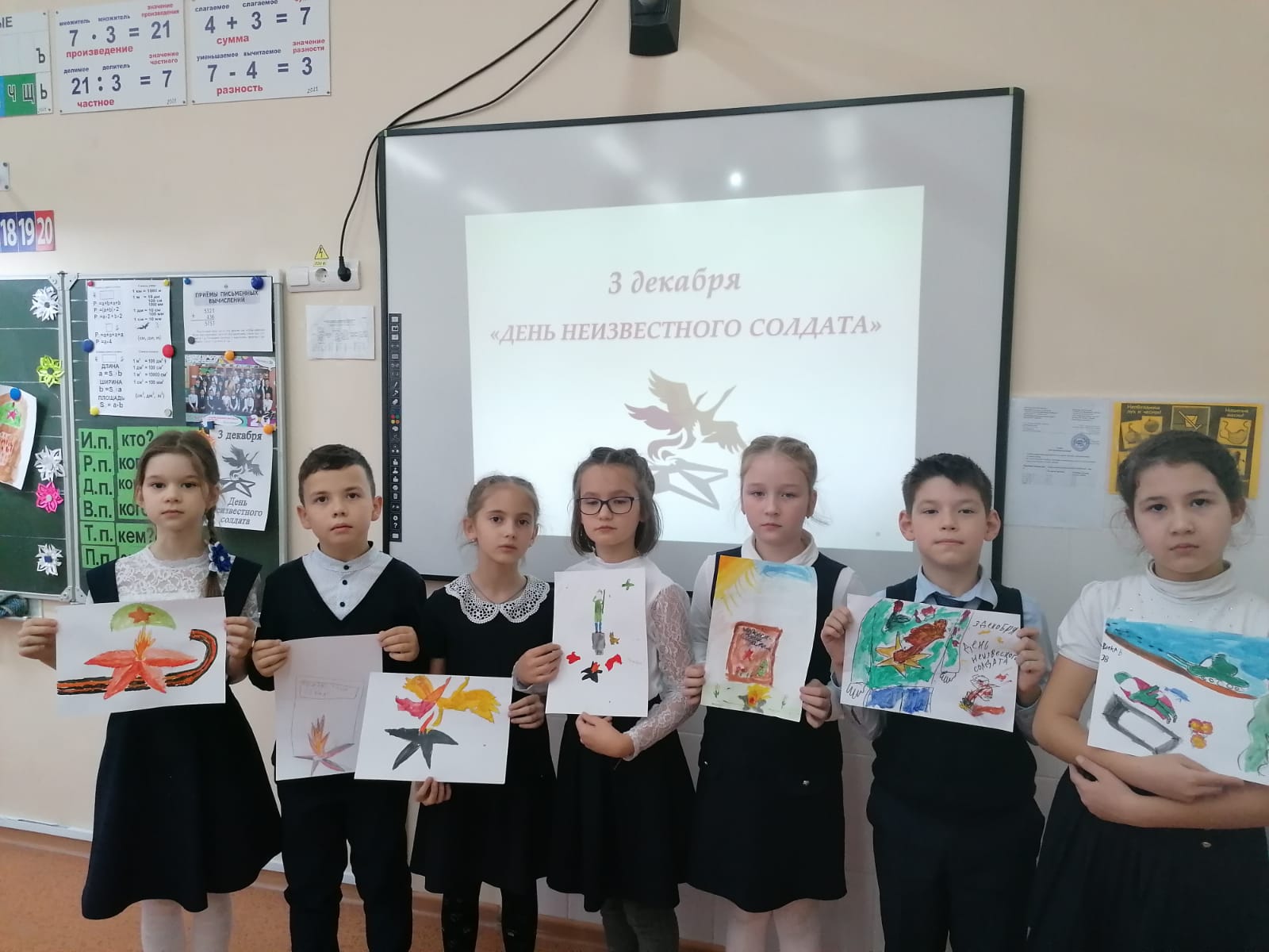 Опубликовано: 03.12.20213 декабря в школе прошли мероприятия посвященные памятной дате- Дню неизвестного солдата.В этот день состоялись тематические классные час на тему «Урок мужества», выставка рисунков «Живет среди нас герой», отряд ЮНАРМЕЙЦЕВ возложили венок к вечному огню, в память погибшим в Великой Отечественной войне, учащиеся 9-11 классов участвовали в международной акции Тест по истории ВОВ. День неизвестного солдата – это не только день памяти погибших в годы Великой Отечественной войны, но и дата, которая объединяет всех погибших и пропавших без вести во время войн и военных конфликтов.Пусть же память о Неизвестном солдате живет и передается из поколения в поколение.