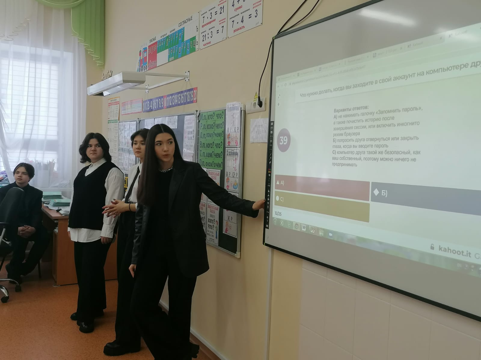 Опубликовано: 25.02.2022Сегодня в госятх 3в класса были ребята 10а класса. Они рассказали ребятам о безопасности в сети интертнет, о видах мошенничества. Ребята приняли участие в викторине, разделившись на группы,отвечали на вопросы по безопасности в сети, закрепляли знания, расширяли кругозор. Творческая обстановка во время игры благотворно влияла на эмоциональный настрой школьников.
