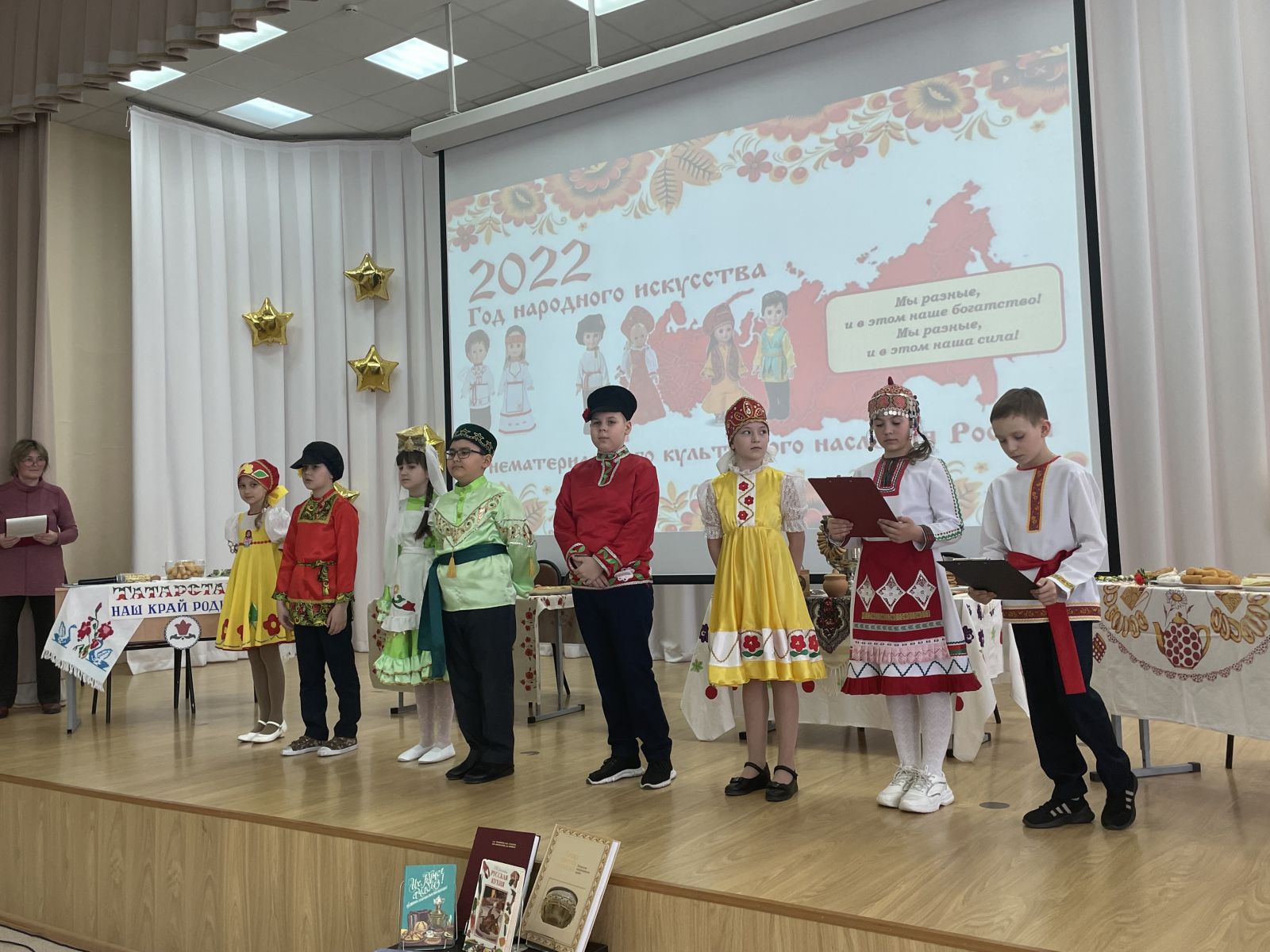 Опубликовано: 12.04.202212 апреля в нашей школе в рамках Недели детской и юношеской книги для учащихся 3-х классов прошёл фольклорный фестиваль «Культурное наследие народов России». Учащиеся 3А класса представили культуру чувашского народа, учащиеся 3Б – татарского, а ребятами 3В и 3Г классов были представлены традиции и обычаи русского народа.