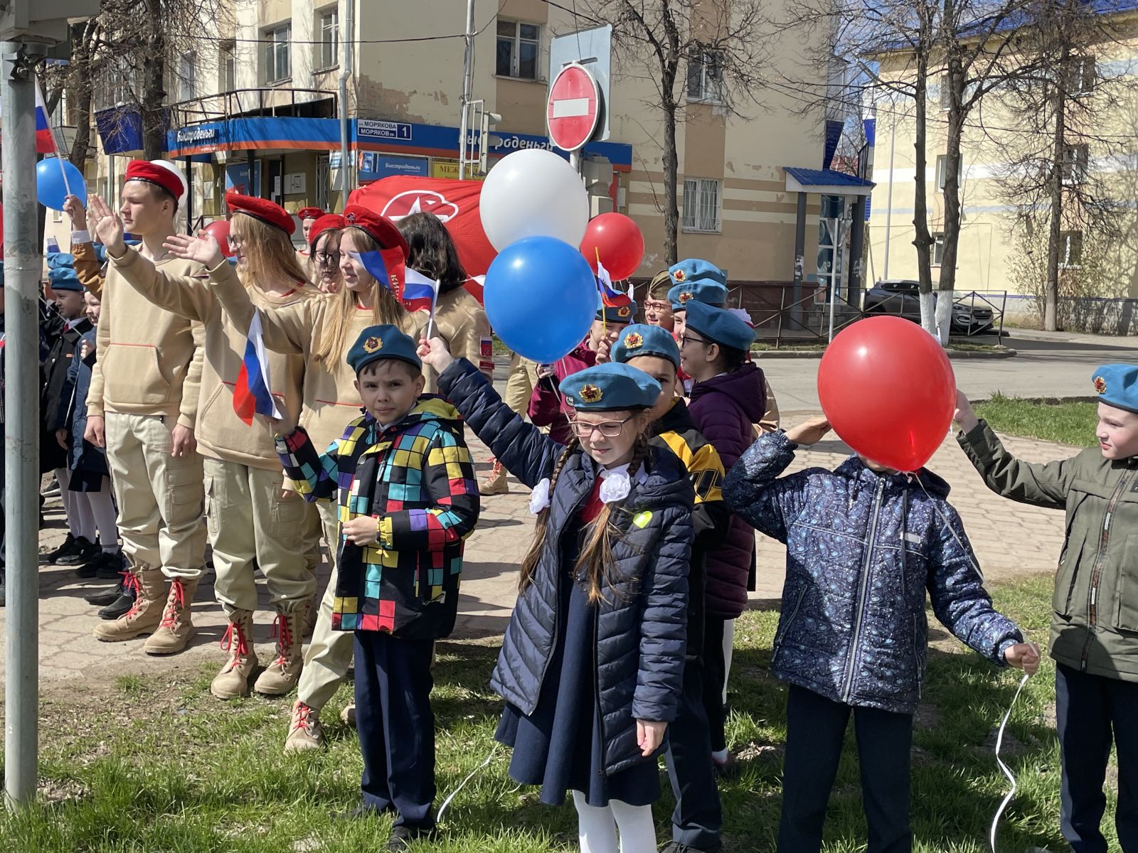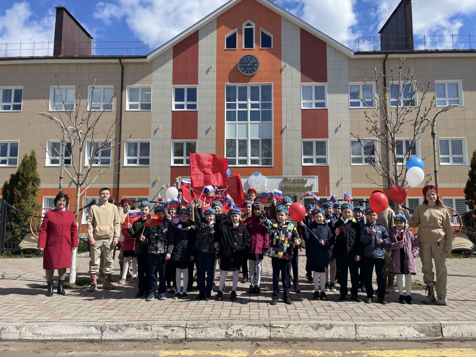 Участников автопробега, которые торжественно проследовали с флагами на машинах по улицам города, встречали и учащиеся нашей школы.