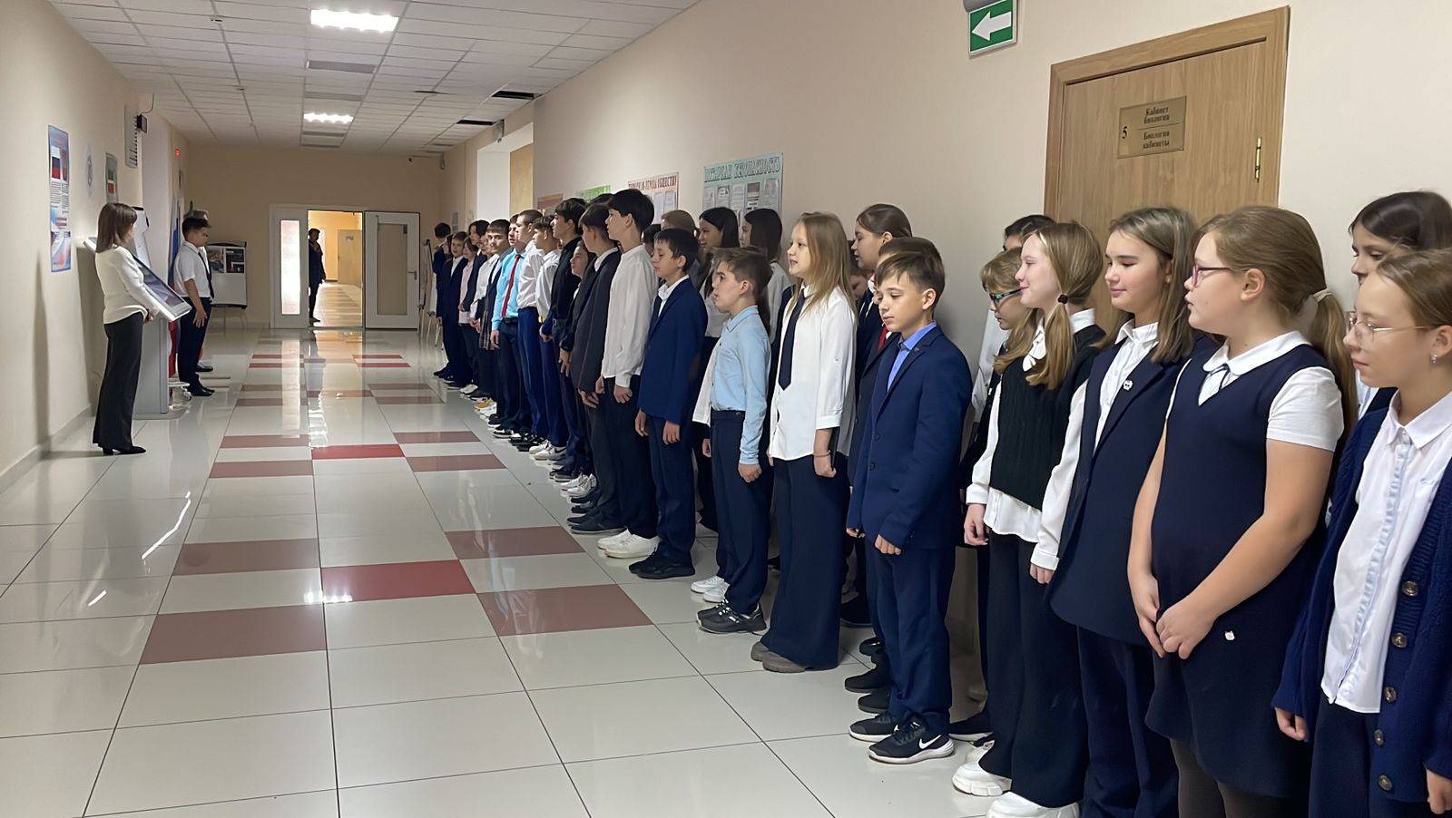Опубликовано: 18.10.202217 октября, по традиции, в школе состоялся торжественный вынос флагов РФ и РТ и исполнение гимнов РФ и РТ. Почётное право вынести флаги РФ и РТ предоставилось учащимся 8б класса Хуснутдинову Амирхану, отличнику учёбы, призеру республиканской олимпиады школьников по математике, призеру республиканской олимпиады по геологии и географии и Хусаинову Марату, отличнику учёбы, участнику всех общешкольных дел.