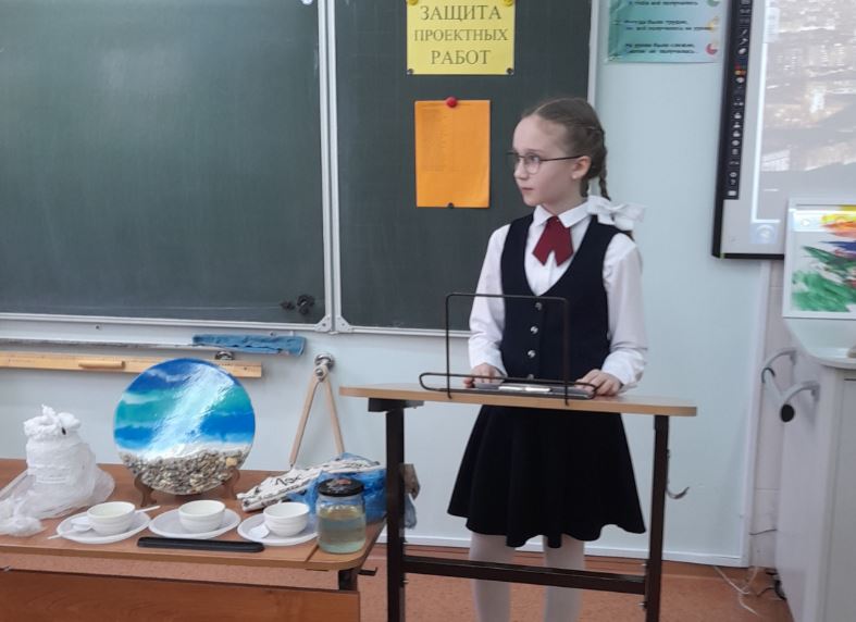 Ребята рассказали, как именно они работали над проектом. При этом демонстрировали и наглядный материал, изготовлению которого была посвящена значительная часть времени, показывали результат практической реализации и воплощения приобретенных знаний и умений.