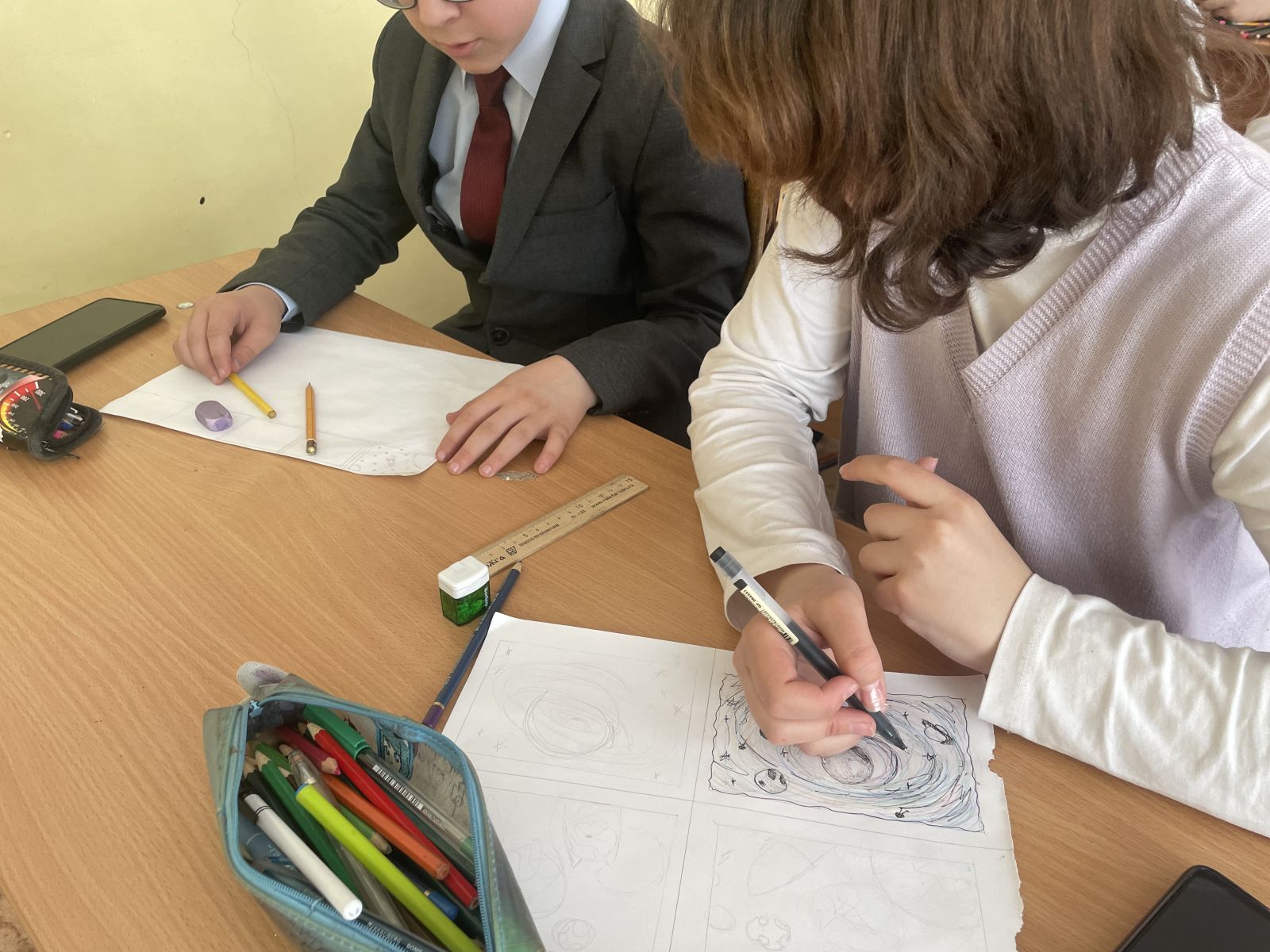 Под таким девизом прошел урок в рамках недели технологии, изобразительного искусства и географии на уроке изобразительного искусства в 6 классе. Ребята разработали почтовую марку и изобразили космический пейзаж. Полет стал увлекательным и разнообразным .