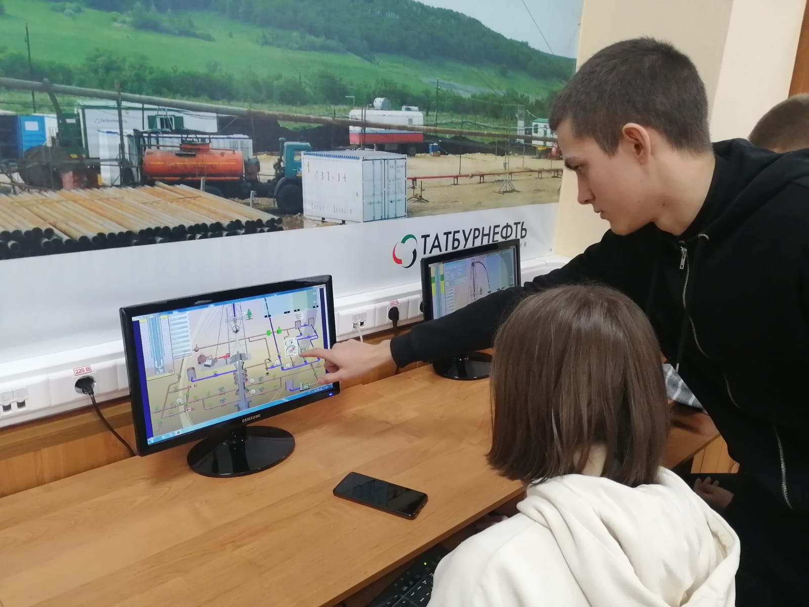 Ребята познакомились со специальностями «Геофизические методы поисков и разведки месторождений полезных ископаемых», «Информационные системы программирования, «Машинист буровой установки», «Разработчик мобильных приложений», «Машинист насосов и трубопроводов». Ученикам было предложено поработать с оборудованием, составить программы на компьютере.