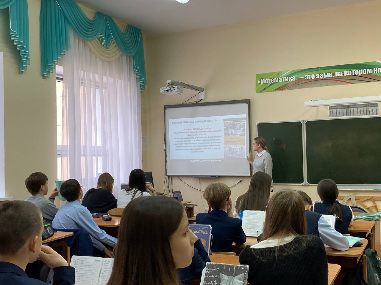 В нашей школе советник директора по воспитанию провела мероприятие «Без срока давности», приуроченное ко Дню памяти о геноциде советского народа нацистами и их пособниками в годы Великой Отечественной войны.