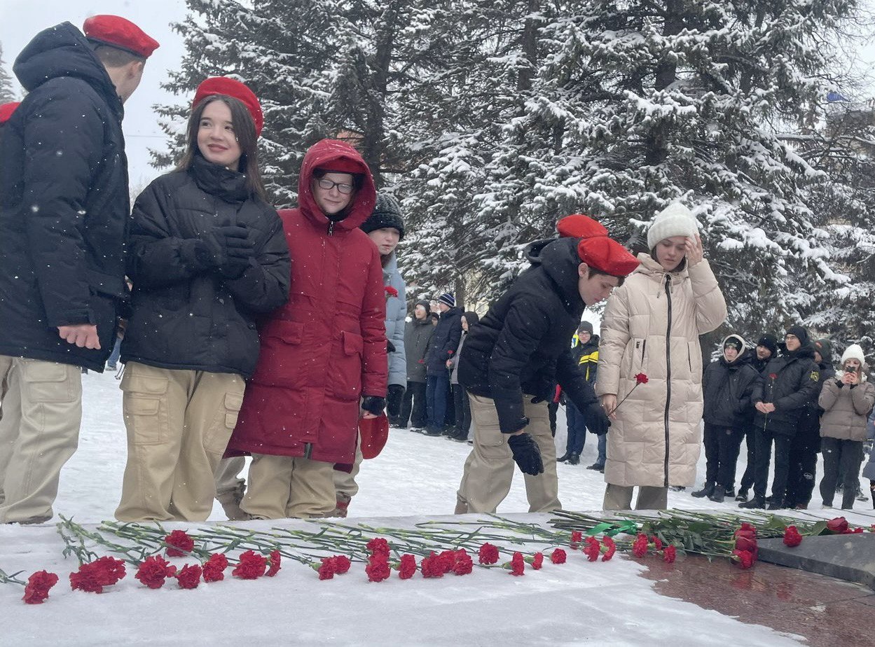 Опубликовано: 19.02.2025Ребята нашей школы возложили цветы к Вечному огню. Они собрались, чтобы почтить память тех, кто сражался за нашу Родину. Нынешнее поколение должно помнить о подвиге наших предков и гордимся ими.