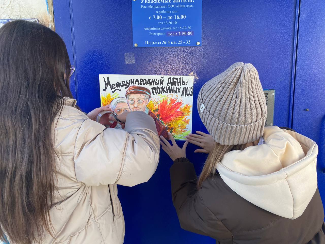 Ребята повесили яркие поздравительные плакаты на подъезды домов, наполнив улицы праздничным настроением.