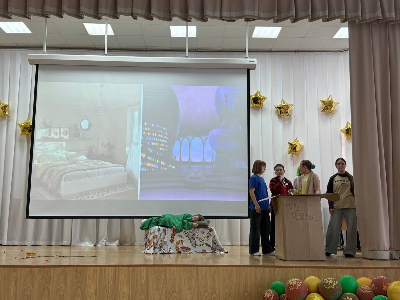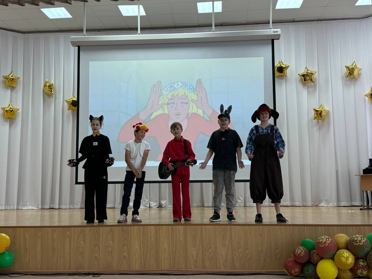 · 5–7 классы погрузились в мир мультфильмов: яркие костюмы, сценки по мотивам мультиков и тематические фотозоны. Было здорово увидеть, как герои любимых анимационных историй оживают на сцене!