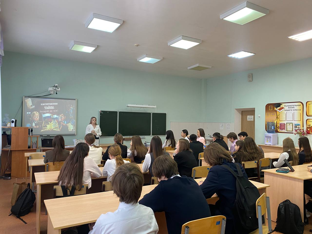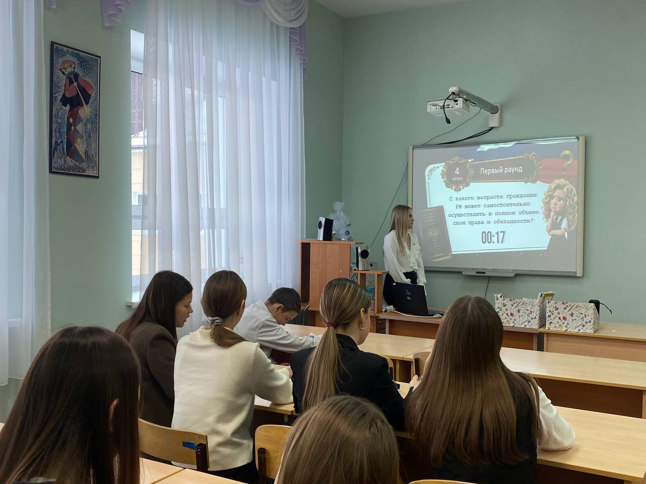 Опубликовано: 02.12.2025Советник директора провела увлекательную викторину «Конституционные тайны»в преддверии Дня Конституции. Учащиеся активно участвовали в познавательной игре, проверяя свои знания основ российского права и знакомясь с историей принятия главного закона страны. Мероприятие прошло в теплой атмосфере, ученики смогли проявить эрудицию и углубили понимание принципов демократии и прав каждого гражданина России.