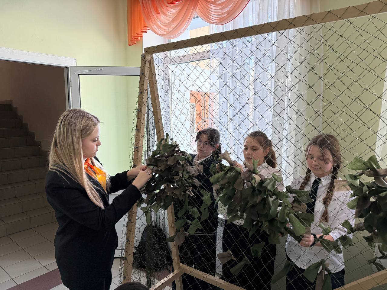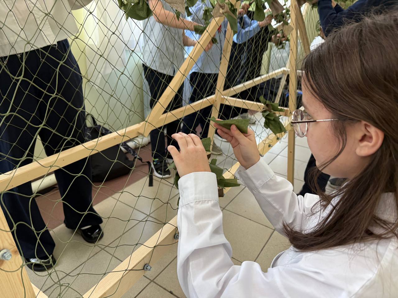 Опубликовано: 14.02.2026В нашей школе активно поддерживают инициативу, предложенную в рамках военно-патриотического месячника, приняв участие в Юнармейской акции: плетение маскировочной сети. Ребята вместе с советником директора школы тоже приняли участие и увлеченно работали над созданием маскировочных сетей. Акция также приурочена ко Дню памяти о россиянах, исполнявших служебный долг за пределами Отечества. Она призвана воспитывать чувство патриотизма, уважение к истории своей Родины и осознание важности мирного неба над головой.