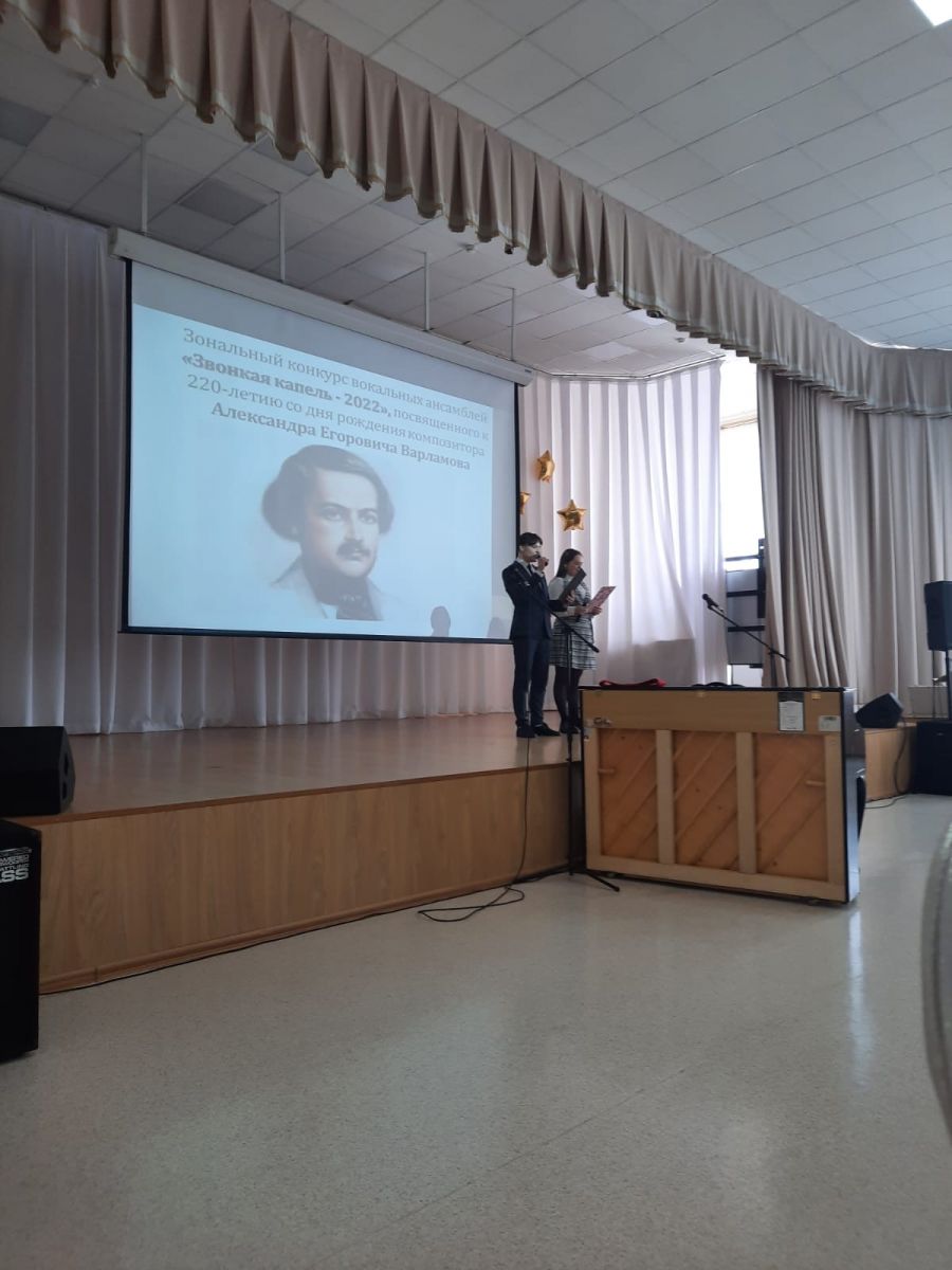 8 апреля 2022 года в нашем городе состоялся зональный конкурс вокальных ансамблей «Звонкая капель -2022», посвященный 220-летию со дня рождения композитора А.Е.Варламова. Конкурс проходил на базе МБОУ «СОШ №2». В конкурсе приняли учащиеся нашей школы 2,3 и 4 класса: всего 16 человек. Группу ребят к конкурсу подготовила учитель музыки Ключникова Э.Ш.Своими впечатлениями о конкурсе поделилась педагог-организатор школы Годованник В.Ю., которая сопровождала детей на конкурс: «Как только ребята пришли во 2 школу, их сразу пригласили в актовый зал занять свои места. все конкурсанты перед конкурсом получили возможность еще раз провести репетицию своих номеров.В 13.00 начался сам конкурс. Большинство участников были в концертных костюмах. Самок яркое выступление было у ребят начальных классов 14 школы. Наши ребята спели просто бесподобно.В заключение конкурса абсолютно все участники поднялись на сцену для исполнения песни Анны Герман «Надежда».Самое главный и приятный факт данного мероприятия , конечно, тот, что наш вокальный коллектив стал призером этого важного конкурса, ребята заняли 3 Место!!! Молодцы, защитили честь школы! Спасибо огромное Эльвире Шафкатовне за подготовку наших ребят, за вклад в формирование творческого потенциала подрастающего поколения!»Просто приятно. что наши дети и другие коллективы посмотрели, и себя показали. Получили неоценимый опыт публичного выступления, увидели . на каком уровне должны проходить подобные мероприятия. -